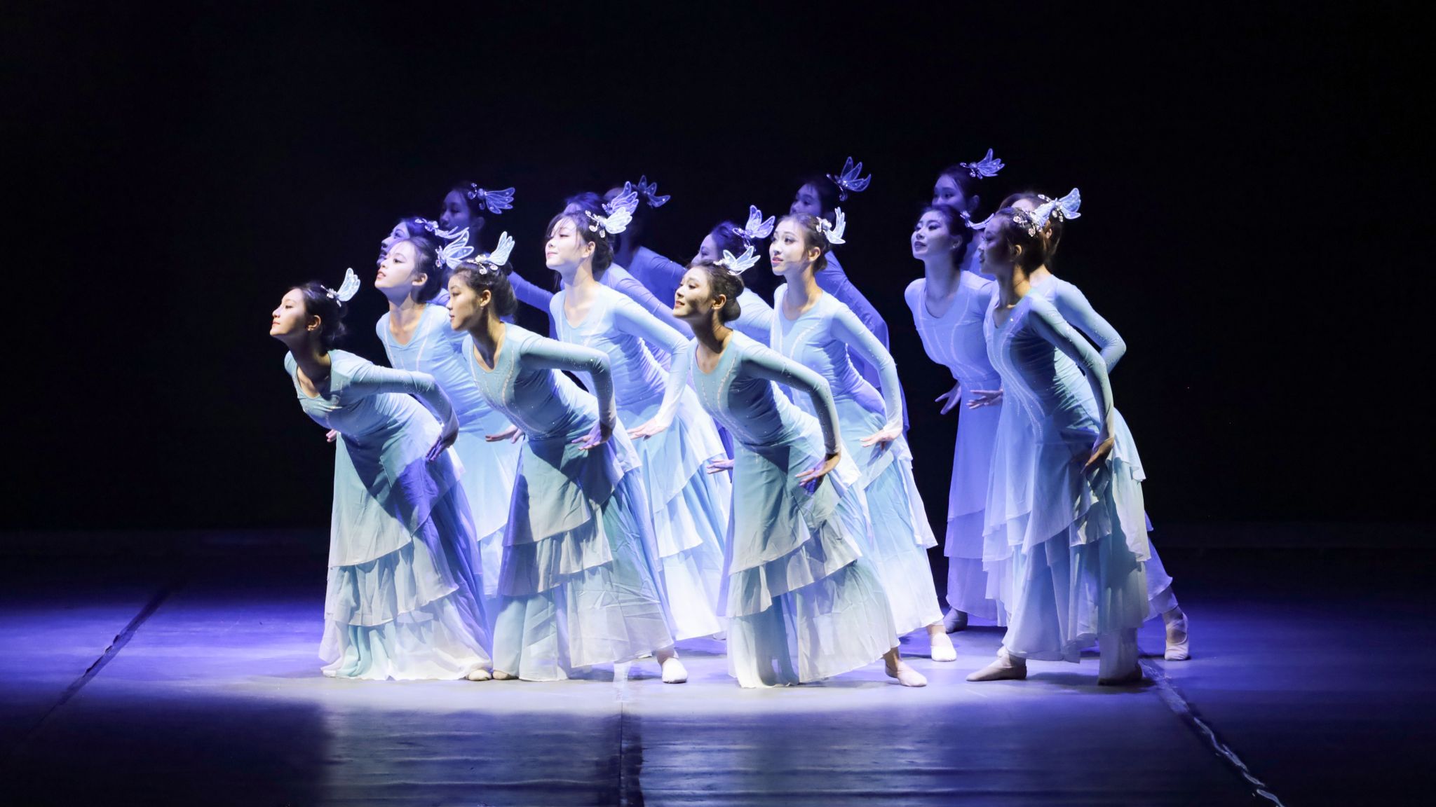 动人的民族舞蹈、活力的现代舞步、深情的剧目演绎……舞蹈专场在课堂与剧目的交织中展开。在《古典舞基本功训练——把上组合》中,舞者们身着统一练功服,随着钢琴伴奏在把杆旁完成擦地、控制等系列动作,动作整齐划一,姿态舒展优美,展现出了扎实的基本功。课堂的严谨与舞台的绚烂交相辉映,2023级鼓子秧歌组合的表演同学们用力甩动鲜红绸带,脚下步伐铿锵有力,洋溢着北方民间的热情与豪迈,充满了蓬勃的生命力。