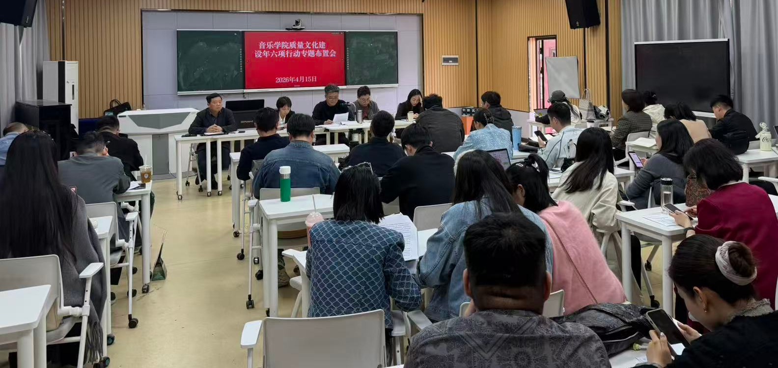 徐冉传达了学校“质量文化建设年”六项行动方案,并要求学院逐项细化任务、明确节点、责任到人。全体教师要聚焦教学质量核心,严格执行教学规范,强化课堂管理,抓实毕业论文、实习实训、艺术实践等关键环节,杜绝AIGC滥用、指导缺位、材料造假;完善多维度考核机制,推动评价从“软指标”变“硬约束”,各教研室常态化开展教研活动,教学督导形成“督—查—改—评”闭环,以质量文化凝聚发展共识。