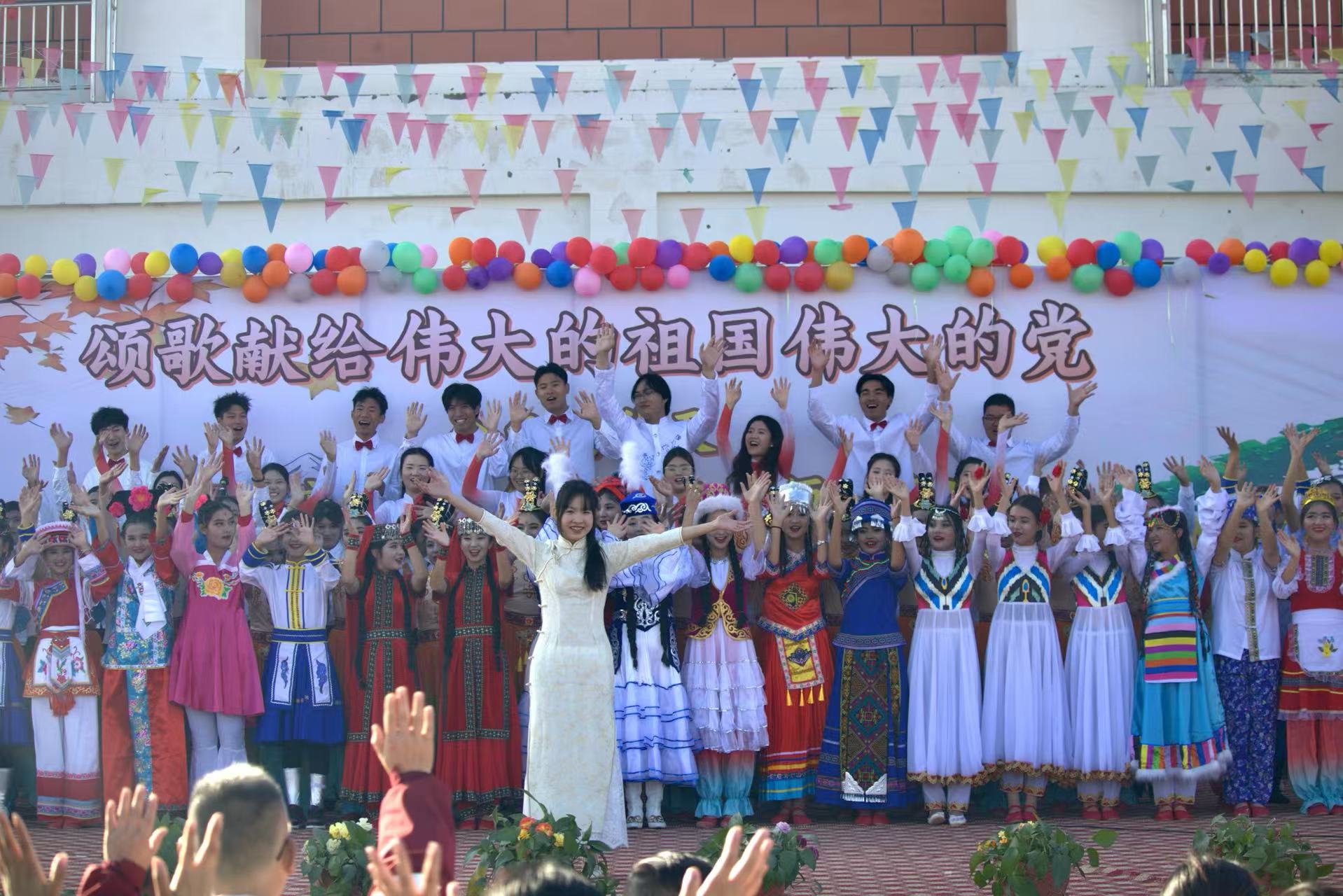 音乐会在《歌唱祖国》的全体合唱中进入尾声,支教队员与安徽实验学校师生用激昂的歌声表达对祖国、对党的无限热爱与祝福。